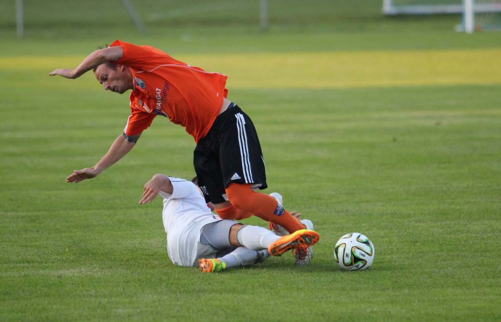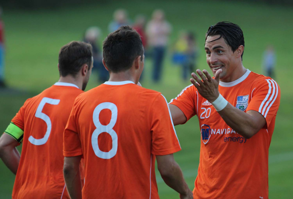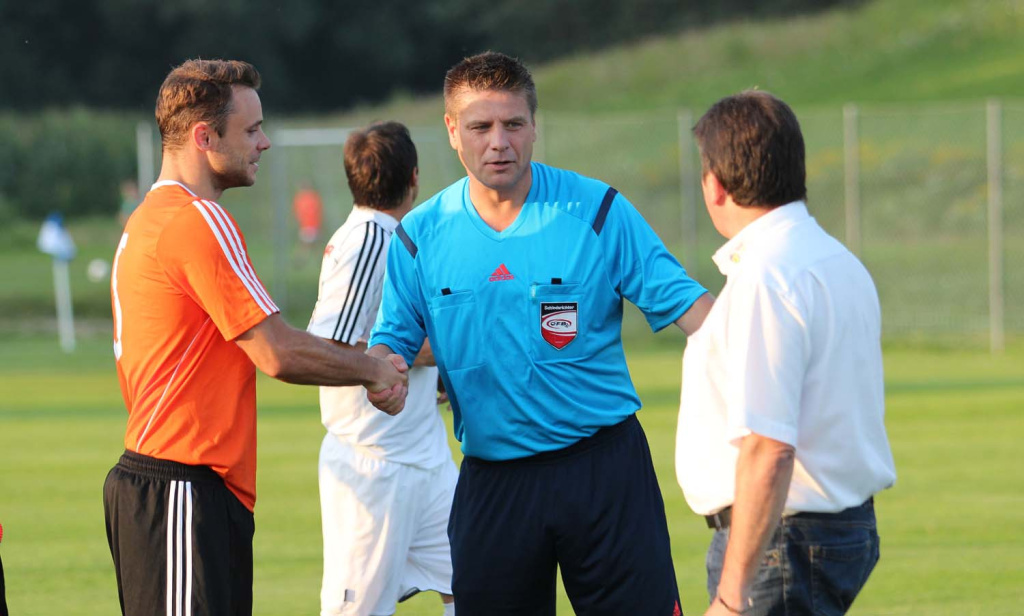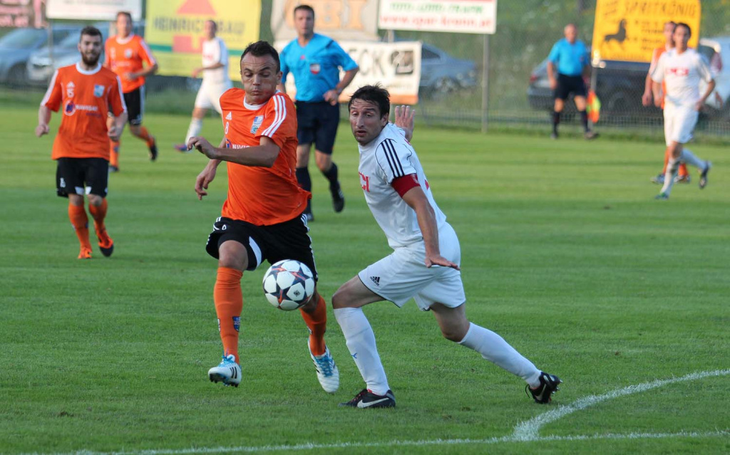 Dabei erwischten wir, mit der gleichen Aufstellung wie in Stinatz, einen optimalen Start. In der 7. Minute nützte Liber einen Sirakov-Stellungsfehler eiskalt aus und traf aus halbrechter Position genau ins lange Ecke - 1:0. Sechs Minuten später hatten wir durch Posch den zweiten Treffer auf dem Fuß, aber "Benji" traf nach idealer Kulnik-Vorarbeit den Ball nicht voll. In der 15. Minute musste auf der Gegenseite Kirnbauer erstmals rettend eingreifen, zwei Minuten später war er dann aber geschlagen. Nach einem Fehlpass beim Spielaufbau zog Buzeti auf und davon und bezwang unseren Keeper im zweiten Versuch - 1:1. Die Unsicherheiten in der Abwehr setzten sich dann leider fort. In der 29. Minute führte ein Missverständnis zwischen Kirnbauer und Pausch zum 1:2 durch Zambo. Dann ging es Schlag auf Schlag. 33. Minute: Kossits ist bei einem Liber-Eckball goldrichtig zur Stelle und besorgt das 2:2. 35. Minute: Bei einem Eckball auf der anderen Seite wird Gerencser "übersehen" und kann ungehindert zum 2:3 einköpfeln. Bis zur Pause prüfte dann Beli zweimal (37., 45.) den gegnerischen Goalie, aber Jelencsits parierte beide Male bravourös. Im zweiten Spielabschnitt waren dann wieder exakt sieben Minuten gespielt, als G. Novak nach tollem Kulnik-Pass eine Riesenchance auf den erneuten Ausgleich ausließ. Der sollte aber in der 65. Minute doch fallen, als Jelencsits bei einer Beli-Freistoßflanke auf der Linie "kleben" blieb und Kossits aus kurzer Distanz per Kopf zum 3:3 einnetzte. Den Schlusspunkt setzten dann leider nicht wir, sondern die Kukmirner durch den überragenden Buzeti, der in der 74. Minute eine tolle Einzelaktion erfolgreich abschloss. In Schlussphase rettete Jelencsits zweimal gegen Liber, wobei er in der 84. Minute einen Kopfball gerade noch an die Latte lenken konnte.