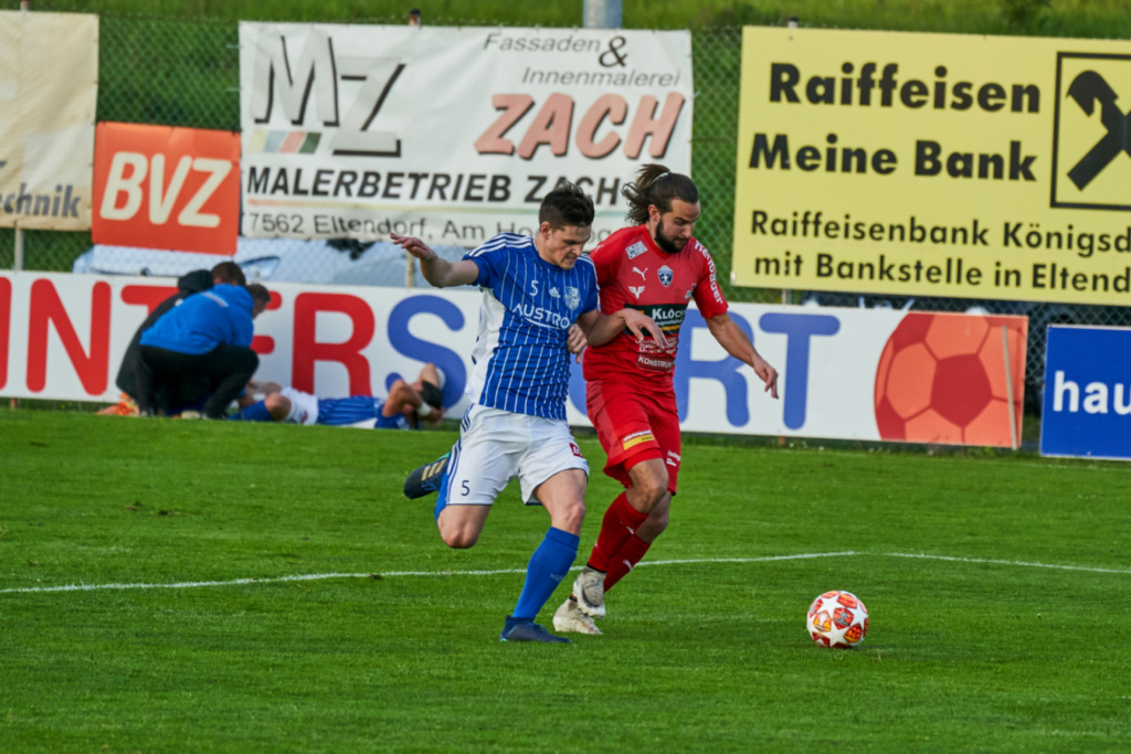 In Minute 20 spielt Nikola einen super Pass auf Nico Binder und dieser schießt eiskalt zur Führung ein, aber fast postwendend ein paar Minuten später bereits der Ausgleich aus stark abseitsverdächtiger Position. Auch in Halbzeit zwei waren wir klar überlegen aber vor dem Tor nicht kaltschnäuzig genug bzw. hatten bei einigen Schüssen Pech das der Ball knapp vorbeigeht. 10 Minuten vor dem Ende dann doch die verdiente Führung. Christoph Schaffer spielt den Ball schön in die Spitze zu Robin Bleyer und dieser lässt sich die Chance nicht entgehen und schießt trocken ein. Aber wie bereits in Halbzeit eins kommt Oberwart sofort wieder ins Spiel. Bei einem Freistoß springt die Mauer hoch und der Oberwarter Spieler schiebt den Ball unter der Mauer ins Tor. Jetzt werden wir alles nach vorne und haben noch die eine oder andere Chance zur neuerlichen Führung. Nach einer Flanke von Schaffer kommt Robin zum Kopfball vergibt freistehend aber per Kopf. Bereits in der Nachspielzeit ein schön getretener Corner von Robin, der Tormann kommt mit Mühe noch an den Ball kann ihn aber gerade noch an die Latte übers Tor wehren, leider lässt der Schiedsrichter diesen dann nicht mehr ausführen.