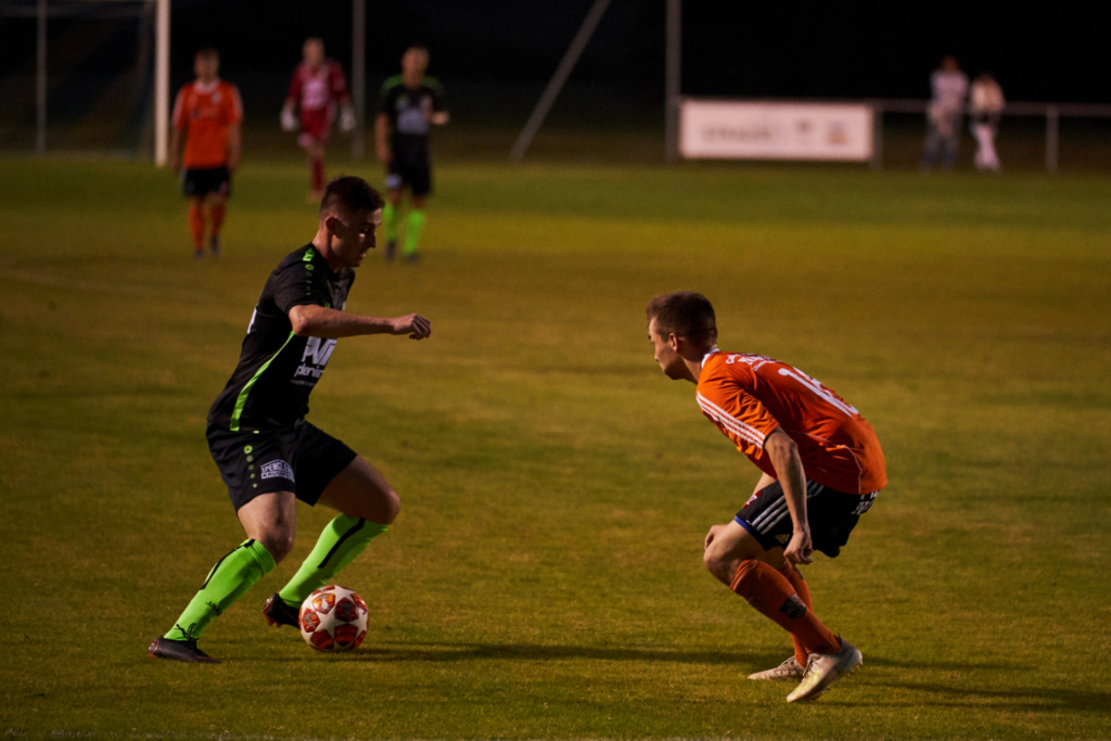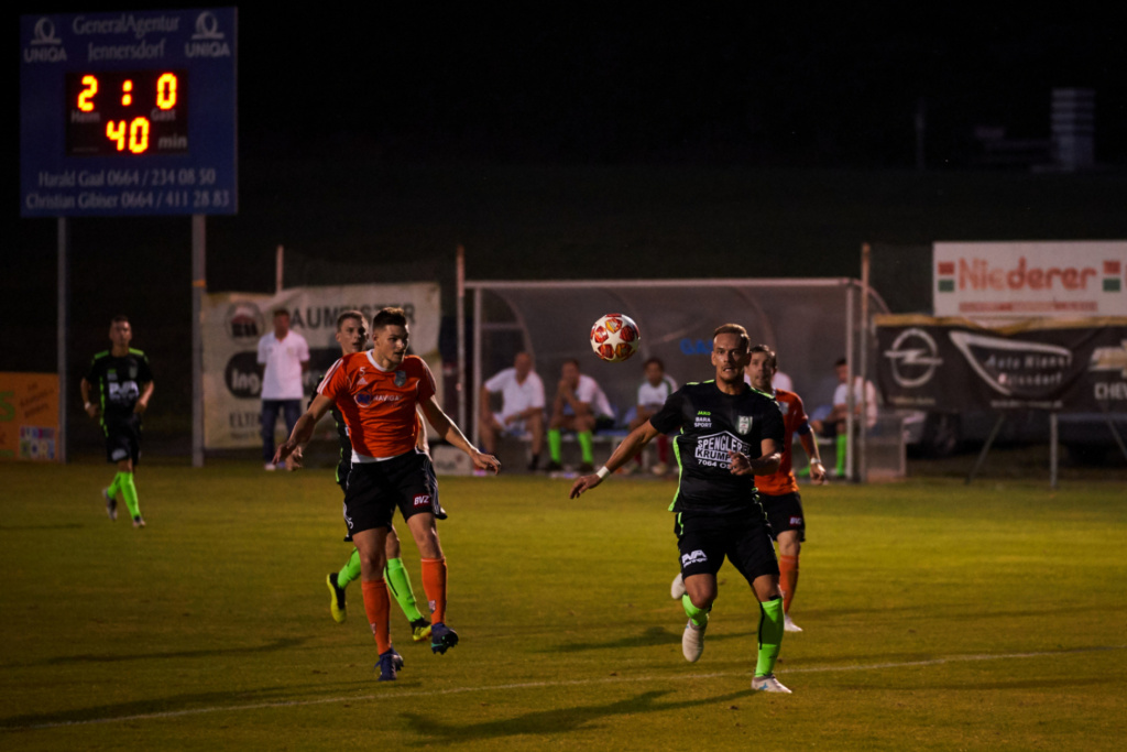 Von Beginn an sah man der Mannschaft an das Sie das an diesem Abend ändern wollten und alle diese 3 Punkte wirklich wollten. Bereits in Minute 2 mit dem ersten Angriff konnten wir an diesem Abend das erste Mal über ein Tor jubeln. Marko Nikolic, der in die Mannschaft gerutscht war, krönte seine starke Leistung an diesem Abend bereits kurz nach Beginn mit der Führung. Nach super Pass von Fabian Wonisch schießt Nikolic eiskalt ein. Klingenbach ist von unserer Aggressivität total überrascht und taucht zu Beginn nach ca. 10 Minuten das einzige Mal in Halbzeit eins wirklich gefährlich vor dem Tor auf, aber Milan Baliko kann sicher klären. Im Gegenstoß dann fast das 2:0 durch Nico Binder nach Pass von Bleyer, er vergibt aber die 100%ige Torchance. Besser macht er es dann nach einer guten halben Stunde, David Kossits bringt den Ball in die Spitze, mit einer Körpertäuschung versetzt Nico seinen Gegenspieler und läuft plötzlich alleine auf den Torhüter. Im 1:1 behält er die Nerven und schließt vom Strafraum mit einem gezielten Schuss zur 2:0 Führung ab. Auch nach er Pause bleibt das Bild ähnlich, wir bestimmen ganz klar das Geschehen und in Minute 57 kommen wir zum 3:0. Nach einem Corner kommt Marko Nikolic wieder zum Abschluss, dieses Mal springt der Ball nach einem Lattenpendler aber Tobias Kossits vor die Beine und dieser staubt eiskalt ab. Die schönste Aktion des Abends dann in Minute 66. Schaffer erobert den Ball in der eigenen Hälfte, bringt den Ball dann toll in den Lauf von Nico Binder. Dieser überläuft in vollem Lauf den Tormann, behält dann allerdings die Übersicht und spielt uneigennützig in die Mitte und Robin Bleyer braucht aus kurzer Distanz nur mehr einschieben. Kurz vor Spielende kommen nach einer Unaufmerksamkeit auch unsere Gäste zum Ehrentreffer, aber dieser war an diesem Abend verschmerzbar.