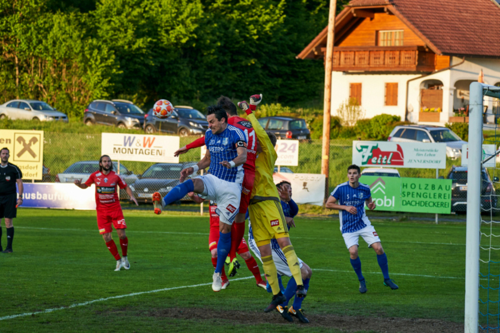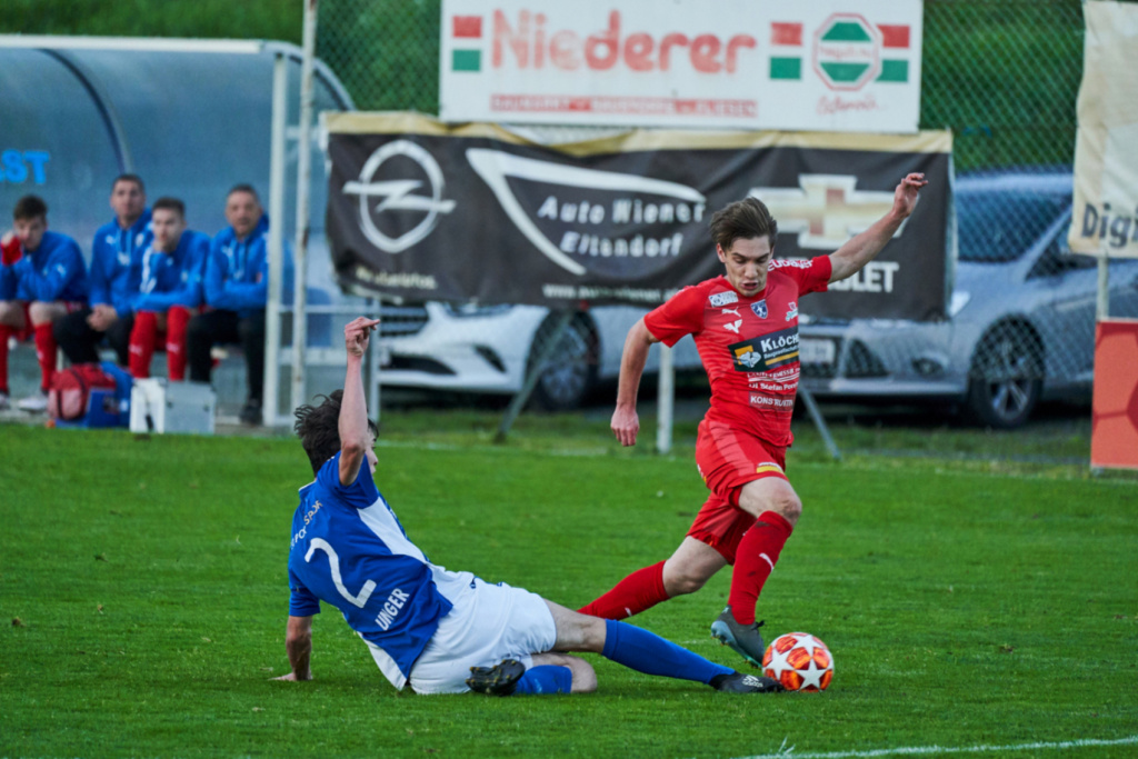 In Minute 20 spielt Nikola einen super Pass auf Nico Binder und dieser schießt eiskalt zur Führung ein, aber fast postwendend ein paar Minuten später bereits der Ausgleich aus stark abseitsverdächtiger Position. Auch in Halbzeit zwei waren wir klar überlegen aber vor dem Tor nicht kaltschnäuzig genug bzw. hatten bei einigen Schüssen Pech das der Ball knapp vorbeigeht. 10 Minuten vor dem Ende dann doch die verdiente Führung. Christoph Schaffer spielt den Ball schön in die Spitze zu Robin Bleyer und dieser lässt sich die Chance nicht entgehen und schießt trocken ein. Aber wie bereits in Halbzeit eins kommt Oberwart sofort wieder ins Spiel. Bei einem Freistoß springt die Mauer hoch und der Oberwarter Spieler schiebt den Ball unter der Mauer ins Tor. Jetzt werden wir alles nach vorne und haben noch die eine oder andere Chance zur neuerlichen Führung. Nach einer Flanke von Schaffer kommt Robin zum Kopfball vergibt freistehend aber per Kopf. Bereits in der Nachspielzeit ein schön getretener Corner von Robin, der Tormann kommt mit Mühe noch an den Ball kann ihn aber gerade noch an die Latte übers Tor wehren, leider lässt der Schiedsrichter diesen dann nicht mehr ausführen.